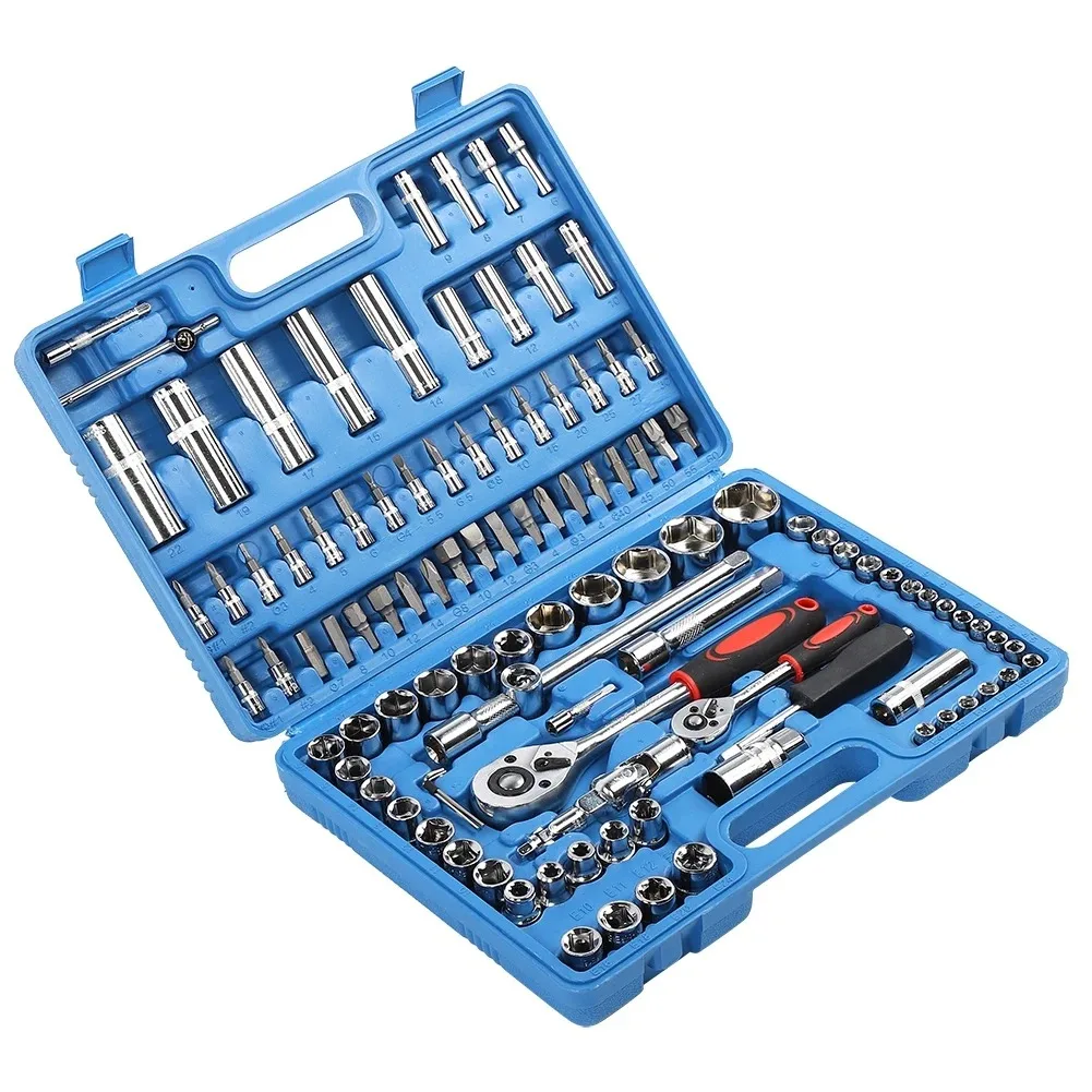 108Pcs Ratchet Wrench Socket Set 1/4in 1/2in CR40 Steel Socket Set Tool Case + Box Hand Tool Kits