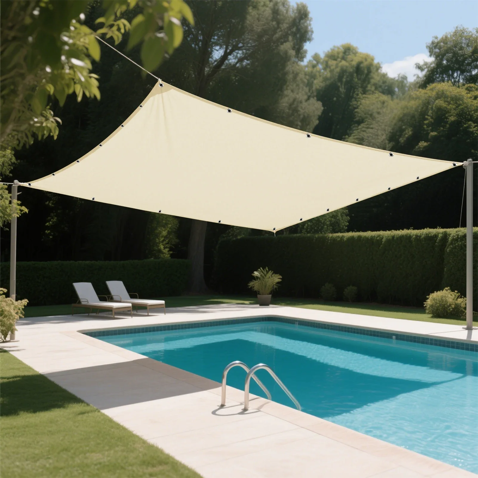 High quality: Shade sail made of 100% high quality and dense polyester fabric, can effectively achieve 95% UV protection and 90% shade rate. Can drastically reduce the temperature and create a cool, comfortable outdoor area. This outdoor shade sail is UV protected, waterproof, tear-resistant and can reach.