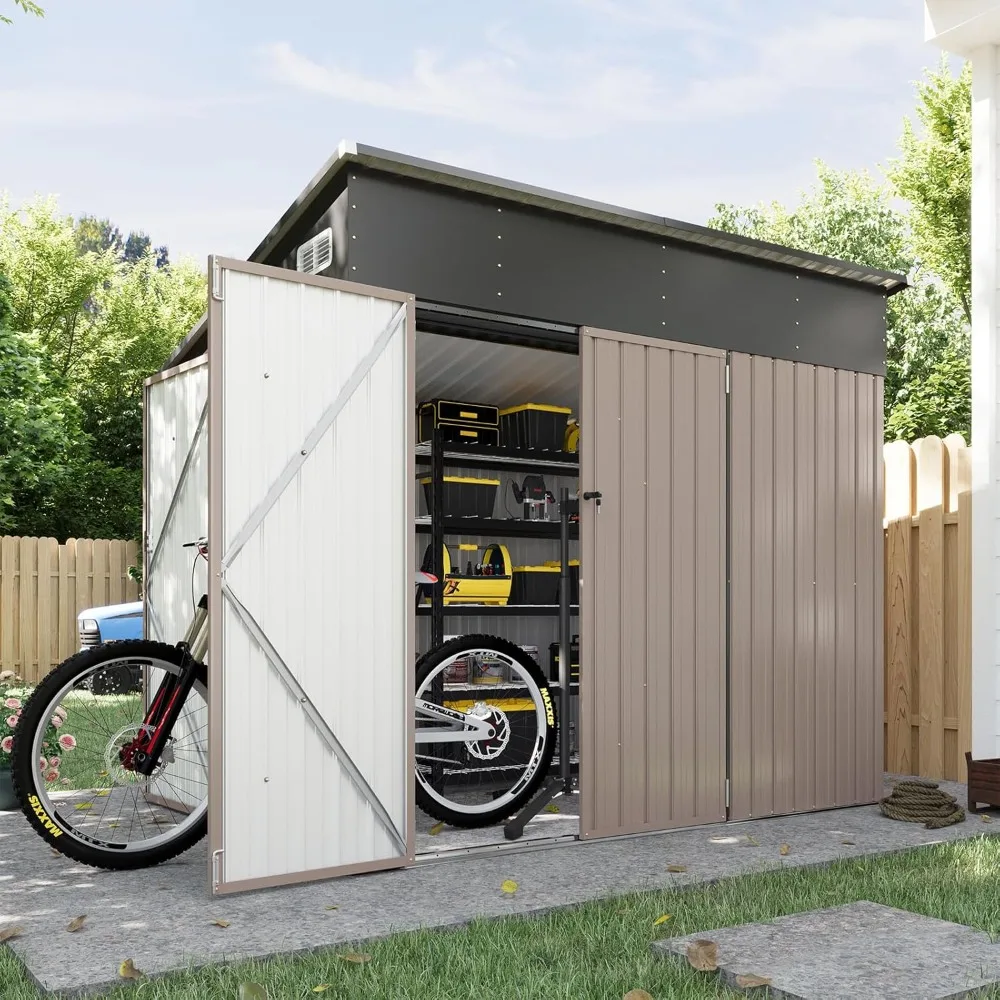 7.5'x5.5' Outdoor Storage Shed with Triple Lockable Doors, Metal Storage Cabinets with Sloping Roof for Tools and Bikes