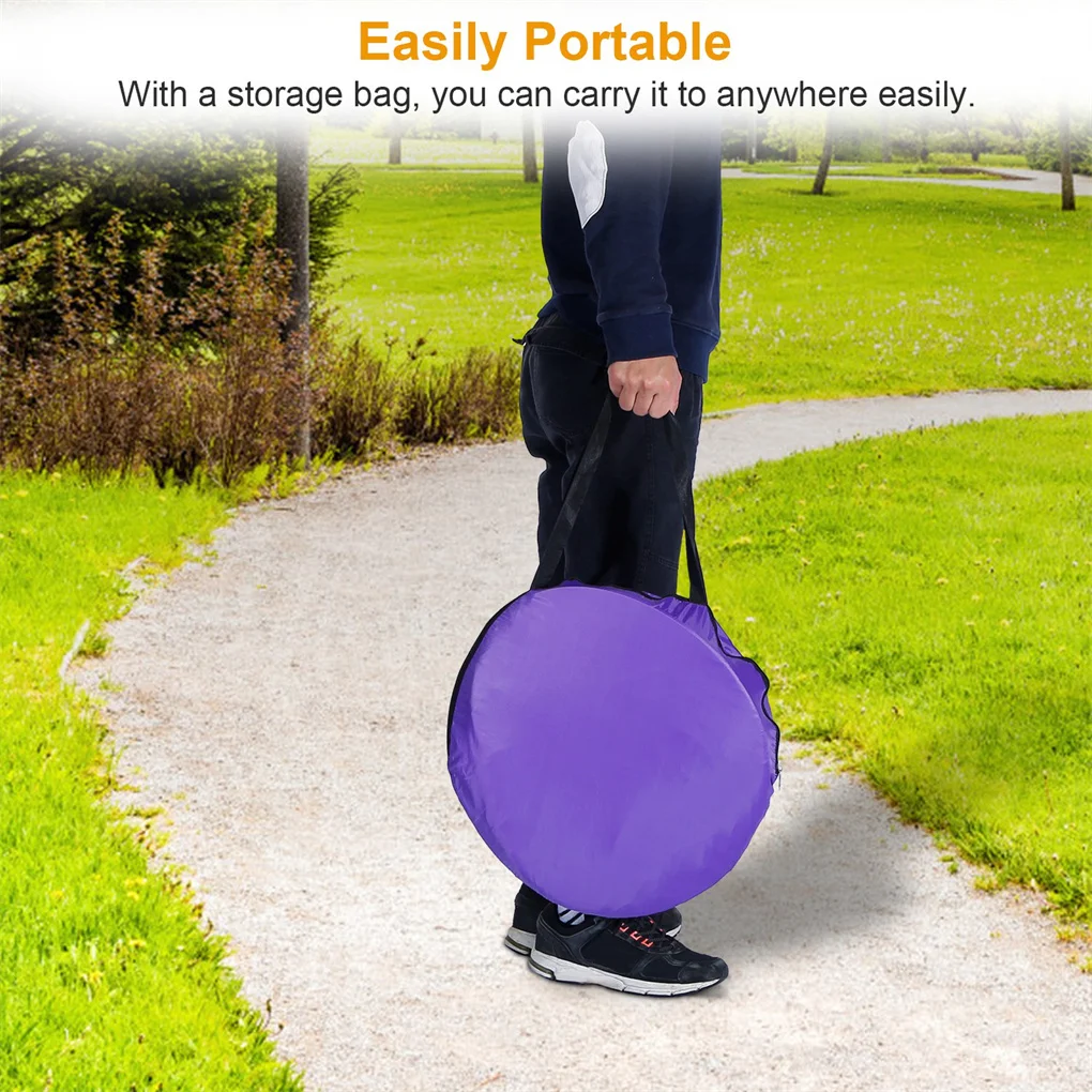 Instant Setup & Easy To Store & Carry: No tool is needed, just pop up to open and set up it. Coming with 6 ground nails to helpfully fix the tent. Besides, it also comes with a round carry bag to organize and carry the folded tent.
