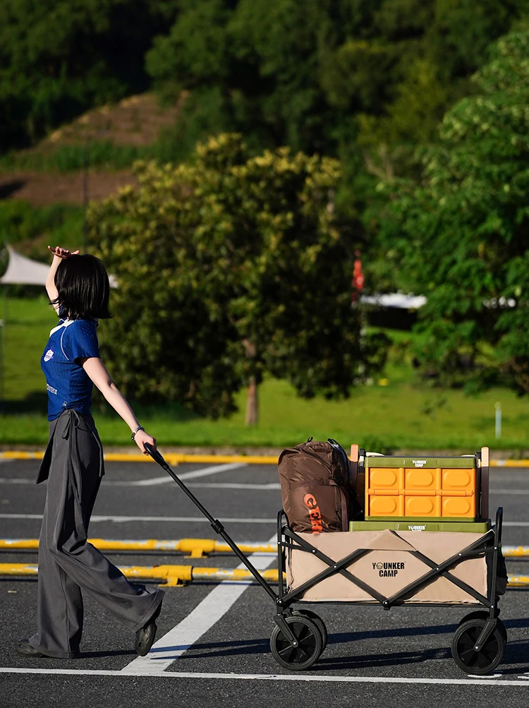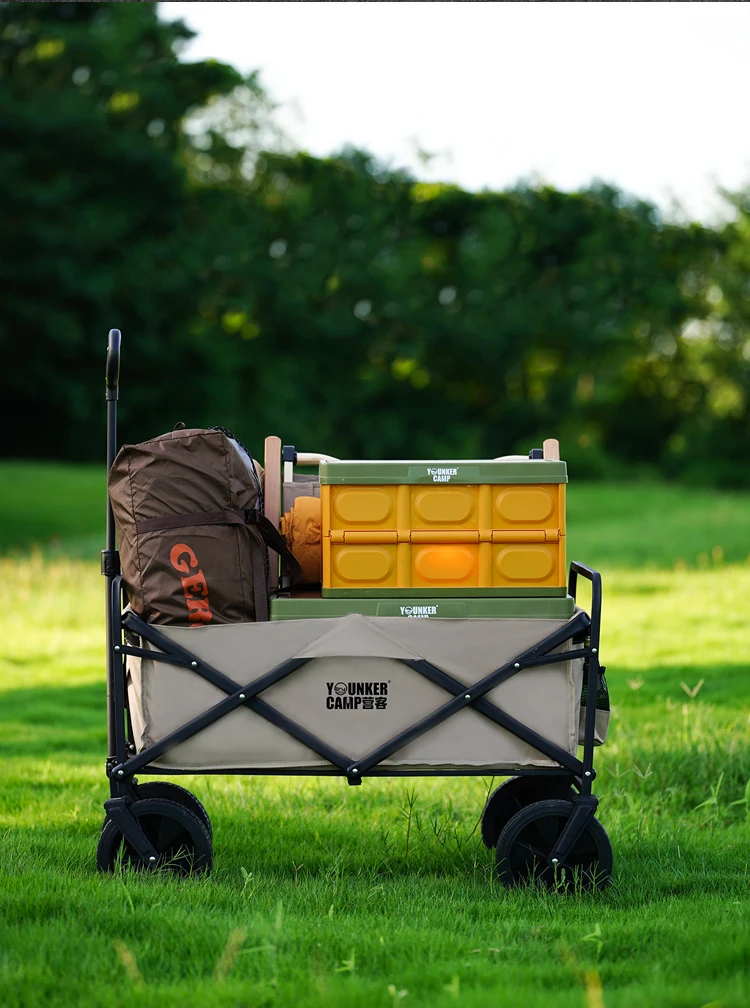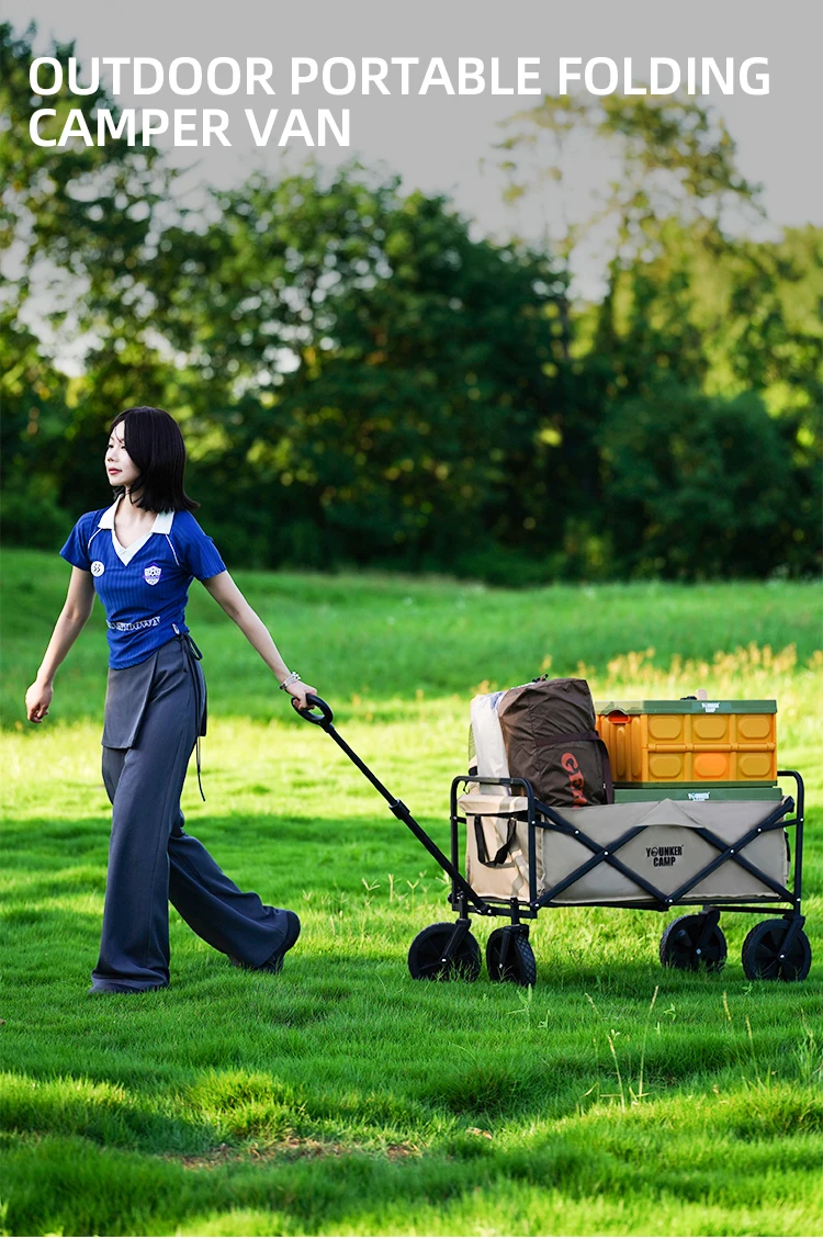 Collapsible Folding Utility Beach Wagon Cart Heavy Duty Large Capacity Fold Wagon Outdoor Trolley Portable Camping Cart