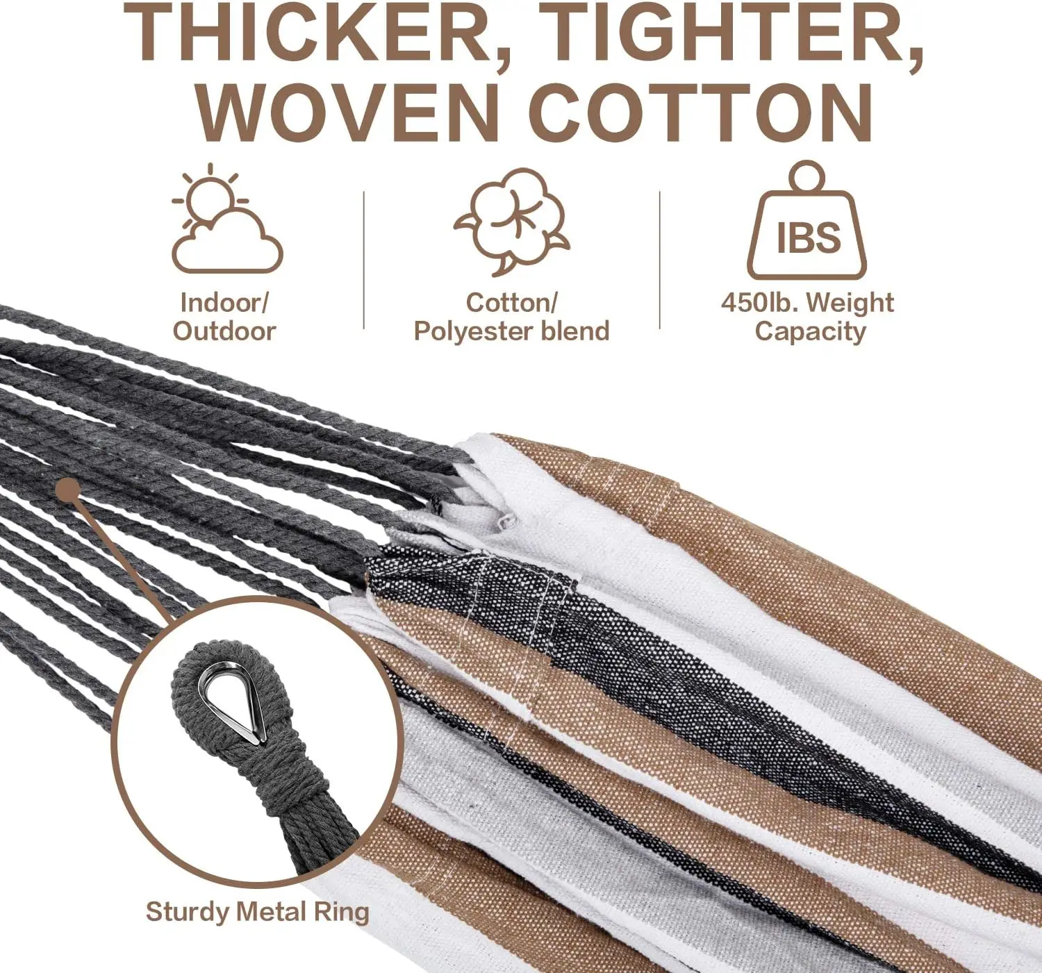 - ULTIMATE COMFORTABLE , The thicker and tighter woven cotton hammock spreads your weight in the center, while the fabric on both sides softly wraps you, and enjoys gravity-free relaxation