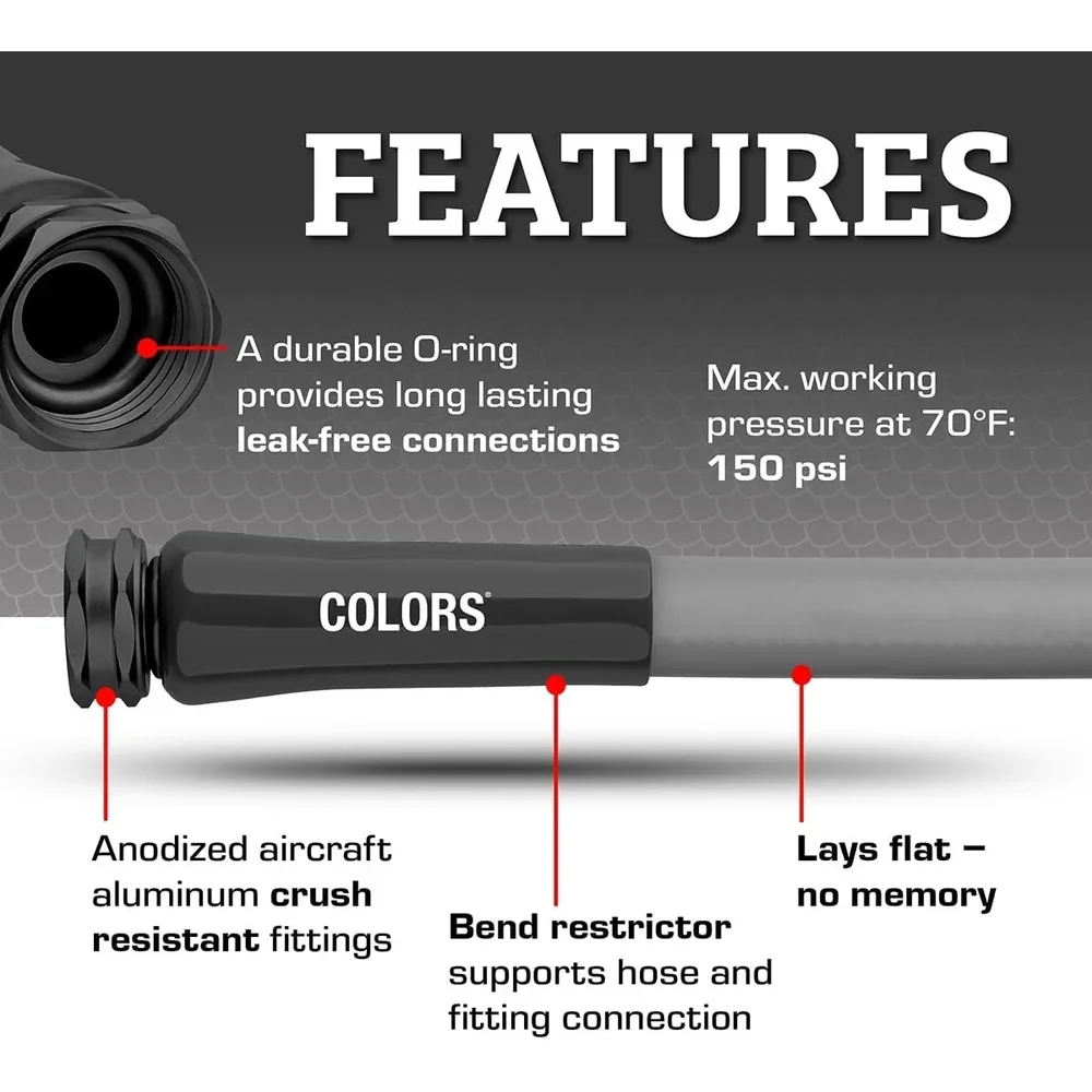Durable Lightweight All-Weather Hybrid Polymer Garden Hose 5/8in x 100ft Flexible Leak-Free Connections Easy Storage Outdoor Use