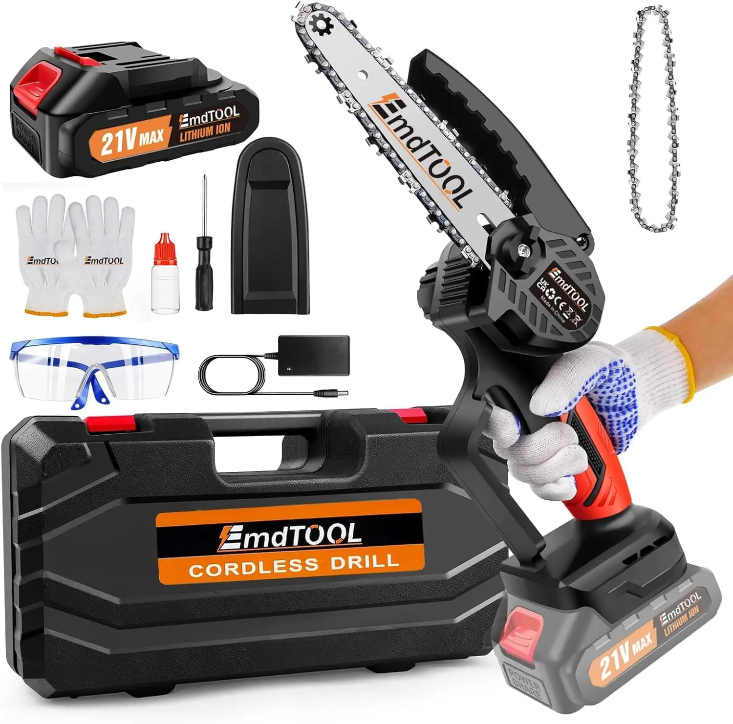 Mini Chainsaw 6 inch Cordless, 21V Battery 5000W Chain Saw for Branch Pruning with 3Ah Battery & 2 Chains for Wood Cutting
