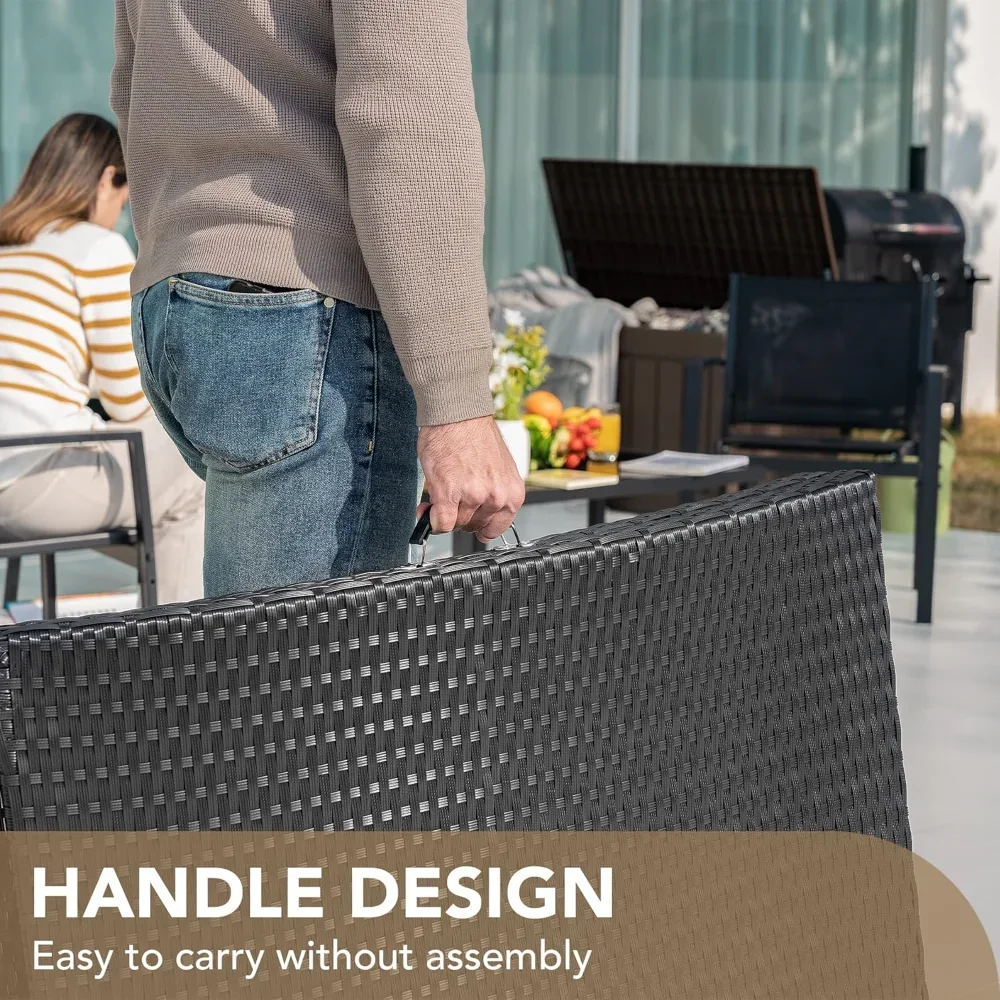 - Sturdy material & Comfort Cushion: This sets is made up with steel tube and black rattan ensuring a long lifetime, its stylish cushion double the comfort for you to totally relax yourself