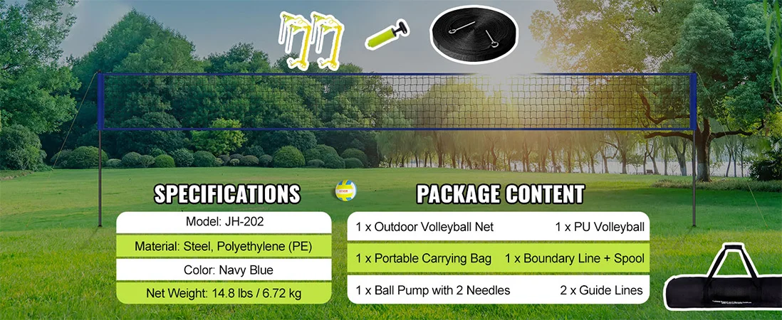 Quick & Easy Assembly: Setting up this volleyball net for backyard is a breeze thanks to its interlocking design. No tools are required, so you can have it ready for play in no time. Additionally, the set includes a convenient carrying bag, making it highly portable.