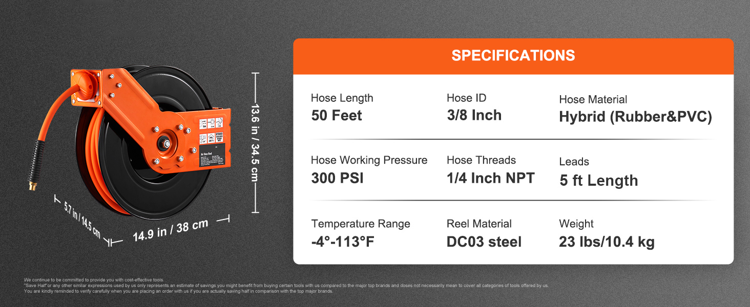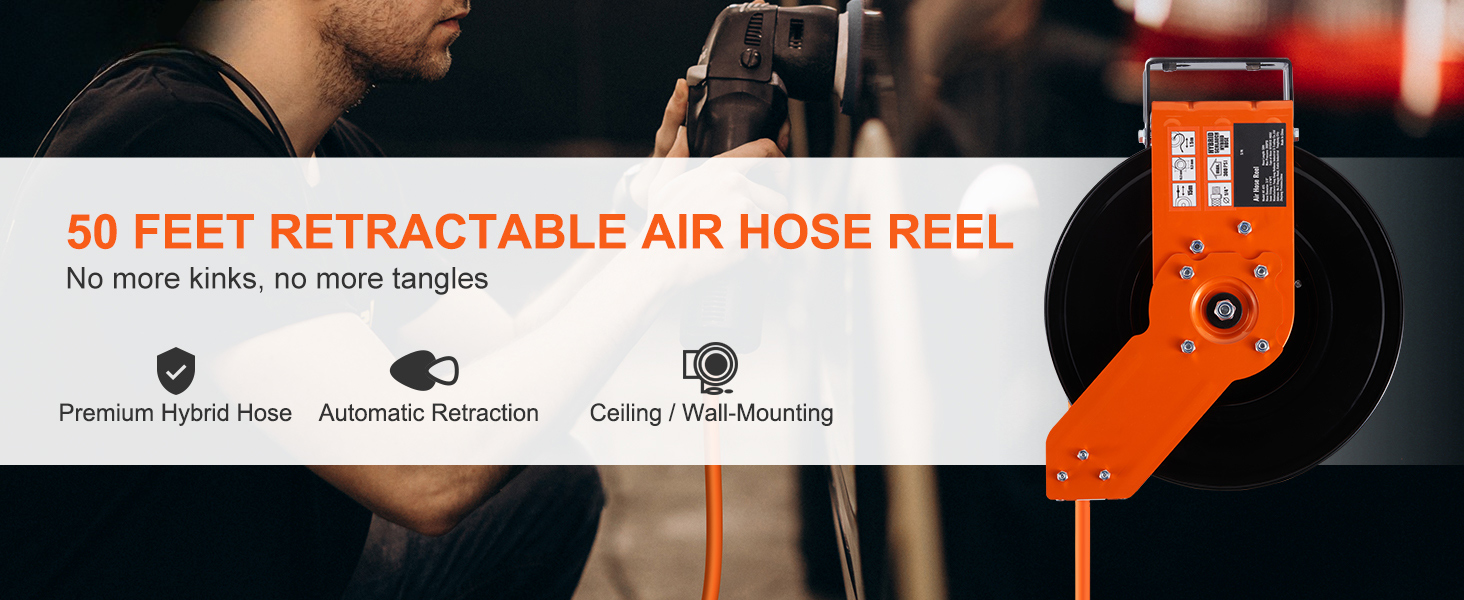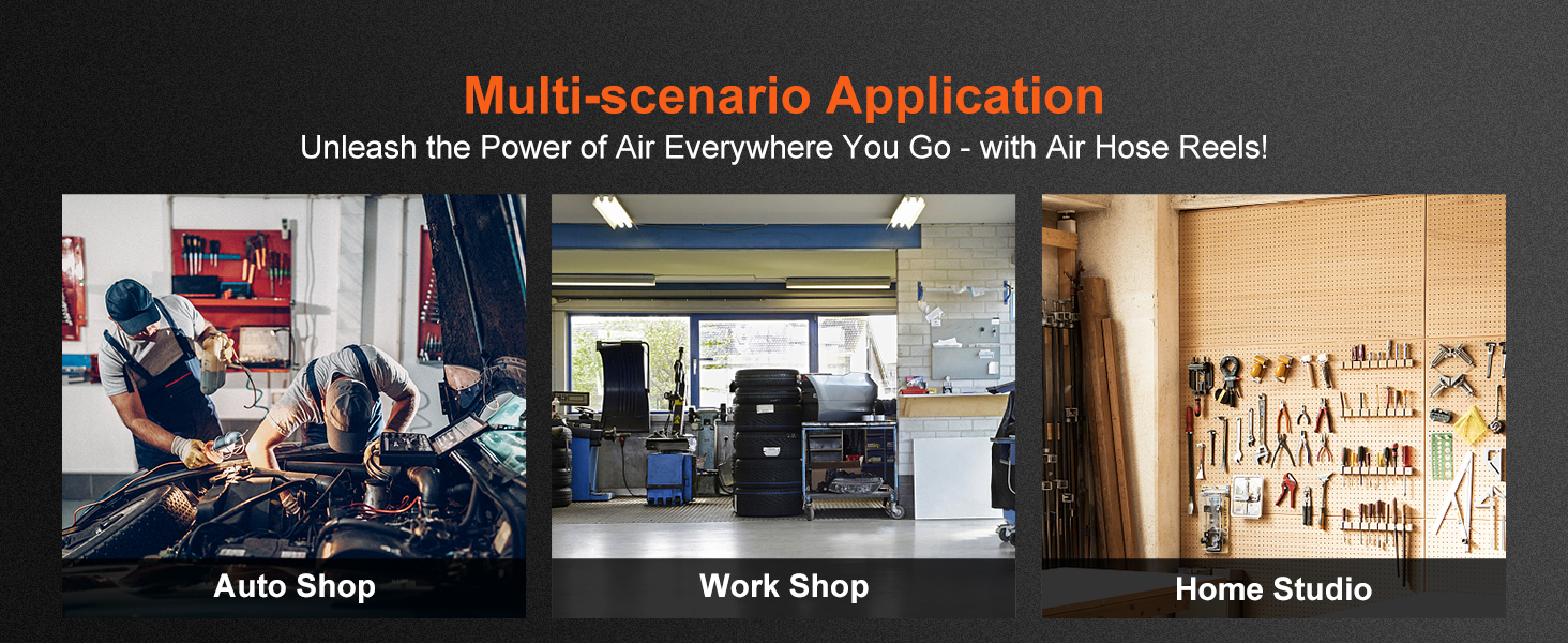 Versatile for Daily Tasks:The SucceBuy 50ft air hose reel is perfect for both industrial and DIY needs. Ideal for auto shops, workshops, home studios, garages, and mobile mechanics, it equips you to tackle any job effortlessly. Get ready for your next project with SucceBuy.